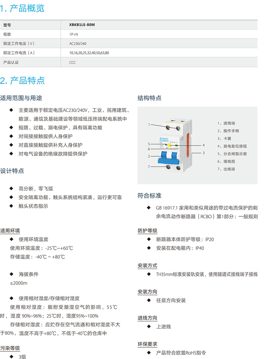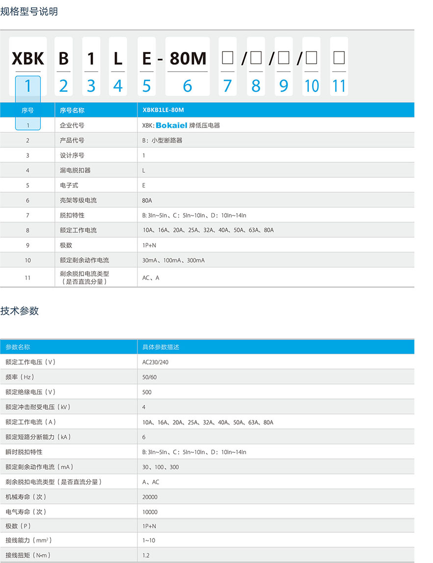XBKB1LE电子式剩余电流动作断路器