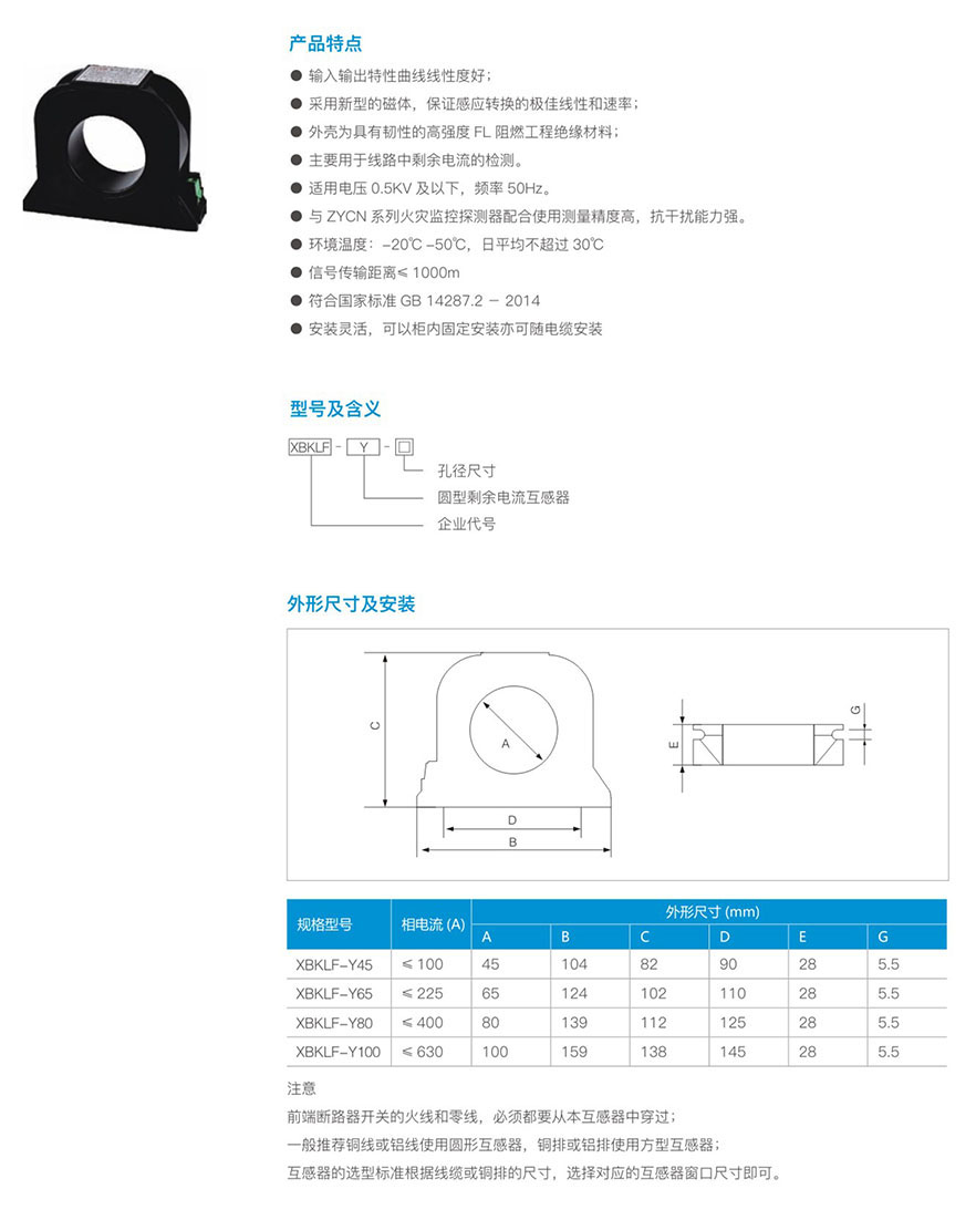 XBKLF-Y圆型剩余电流互感器