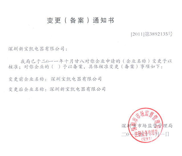 变更(备案)通知书